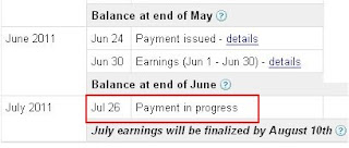 But that was yesterday and today is today and I'm glad to report that I finally got my "payment in progress" line today. That means that I should be able to spend my Adsense money tomorrow (or if I follow Rose's tip - I can start to spend it later on today!